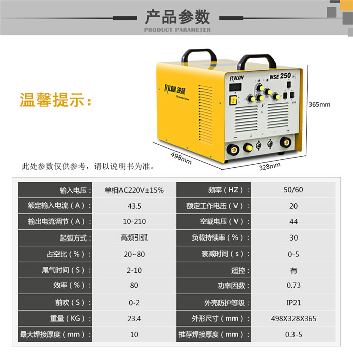 銳龍WSE-250交直流多用方波氬弧焊機焊鋁手工焊電焊機220V 官方標配