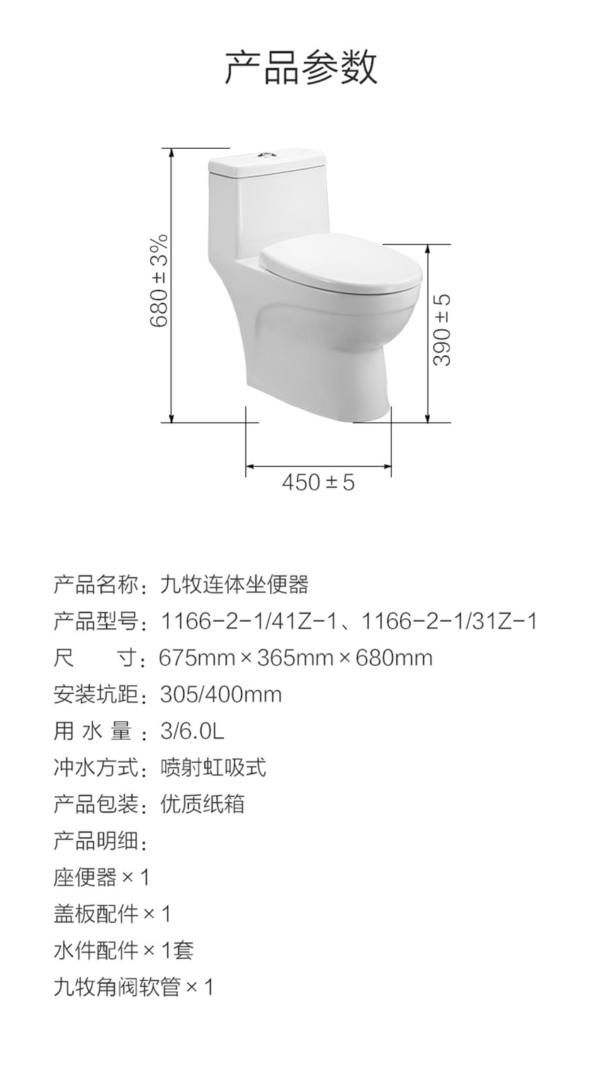 JOMOO九牧 靜音抽水馬桶噴射虹吸式節(jié)水坐便器 1166